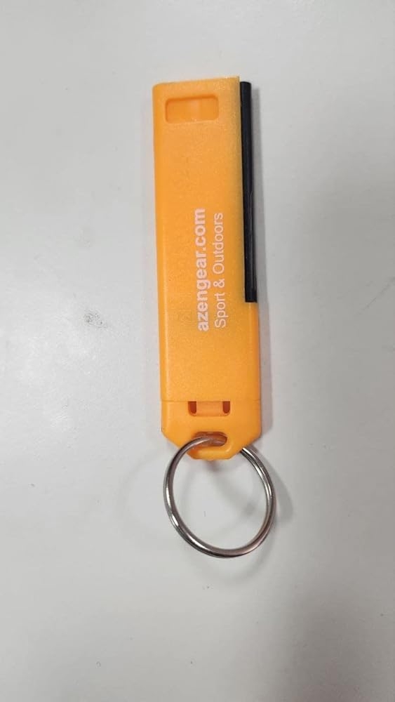El silbato suena fuerte y el pedernal es sencillo de usar. Como pega, es que la barra se gasta bastante rápido.Tiene un color anaranjado que lo hace bastante visible. Además, viene con una anilla para poderlo usar de llavero o tenerlo colgado.Para un apuro, puede valer.