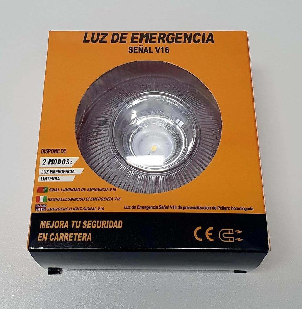 MAGIC SELECT Luz de Emergencia V16 se entrega en su embalaje original.Se carga bastante rápido y tiene 2 modos de funcionamiento, girando la tapa inferior o poniendolo en una superficie metálica.Cambia de luz contínua blanca a ráfaga amarilla con cada encendido.Ilumina bastante para hacer cualquier revisión en modo linterna y te hace visible a bastante distancia en modo ráfaga.