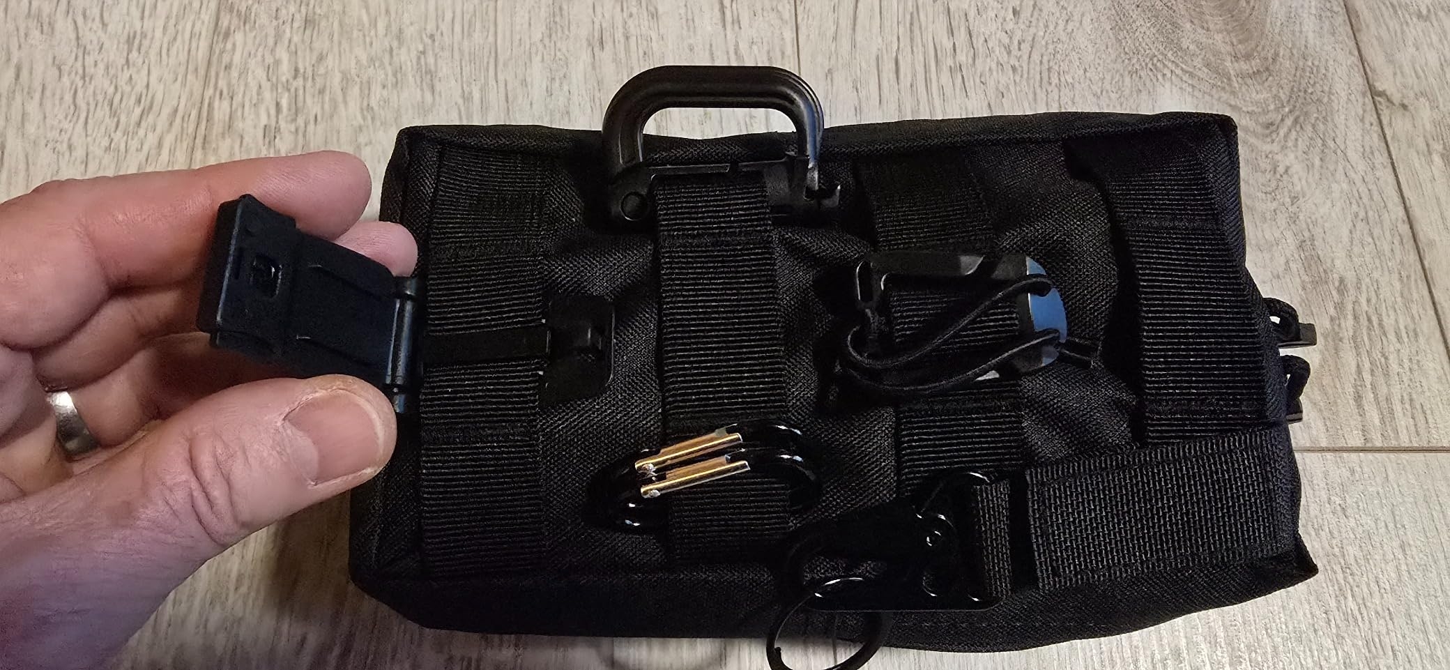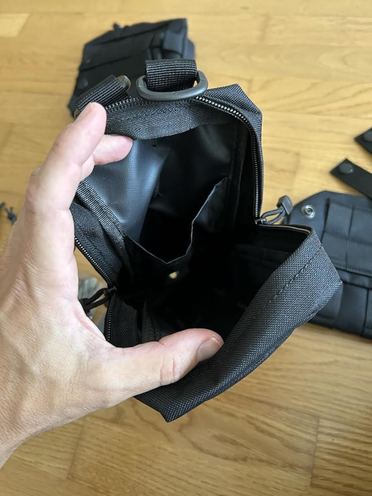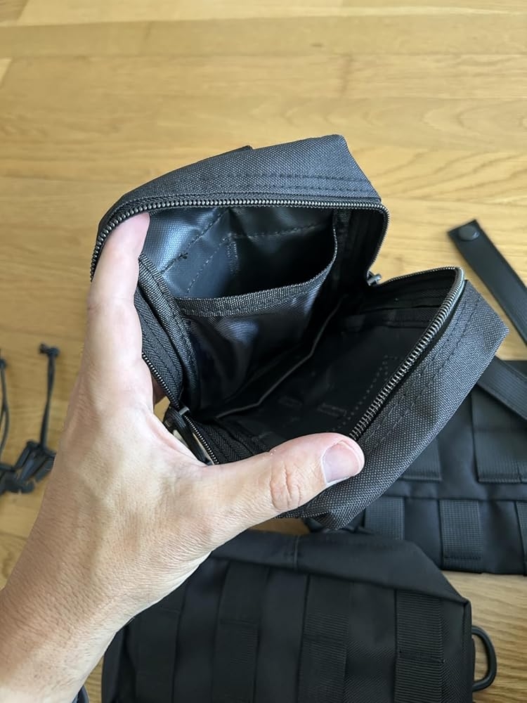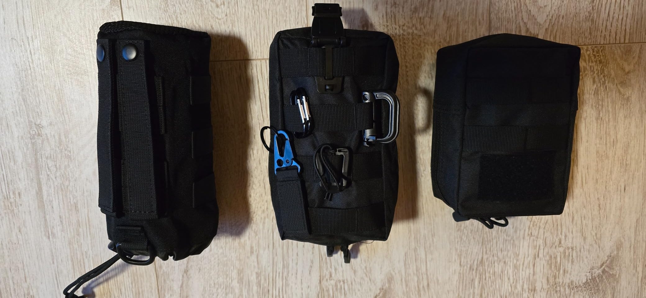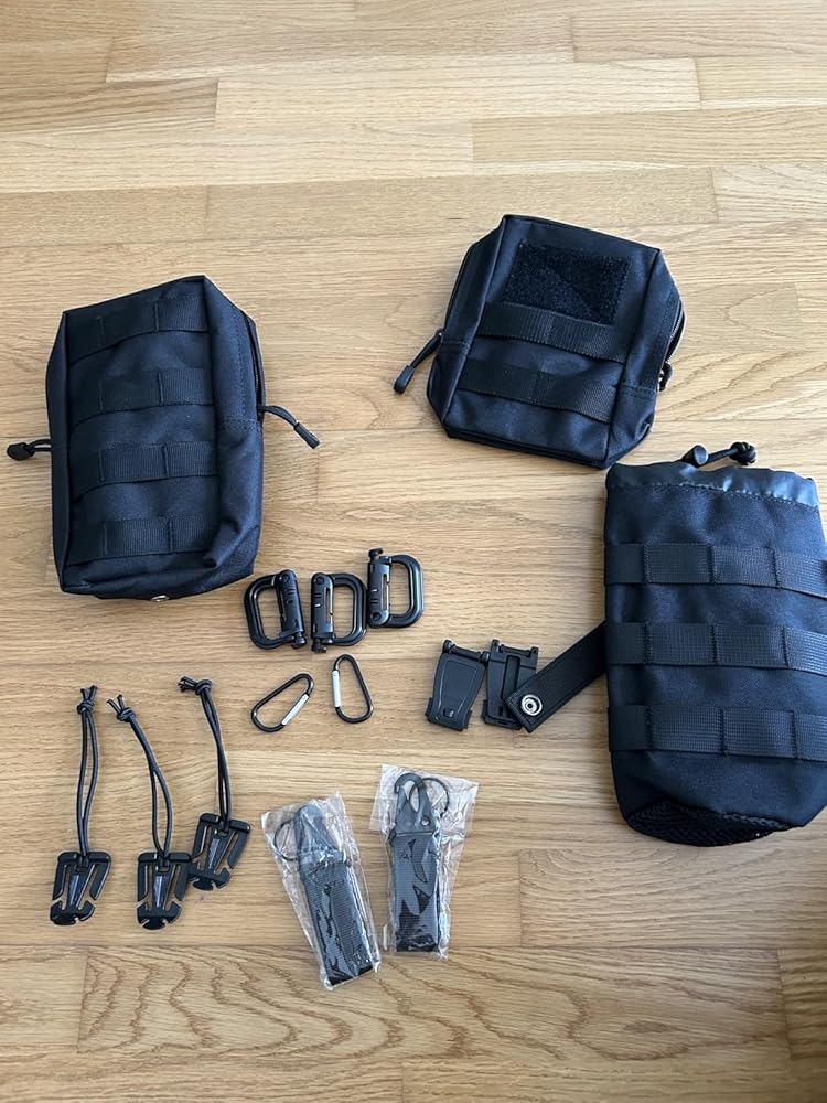 tilizo equipo MOLLE a menudo en salidas al campo, entrenamientos tácticos y configuración de mochilas EDC, y este kit me ha sorprendido por su relación calidad/precio.Material y costuras: El nylon es resistente, no es Cordura de gama alta, pero aguanta rozaduras, humedad y uso diario sin problema. Las cremalleras y cierres funcionan suaves y sin engancharse.Modularidad real: Las correas MOLLE son firmes, encajan bien en mochilas, cinturones o chalecos. Las bolsas no se mueven una vez fijadas, lo que es clave en movimiento.Tamaño útil: Compactas pero con buena capacidad para organizar elementos esenciales: multiherramienta, linterna, botiquín, mechero, powerbank, navaja, etc.Extras prácticos: El accesorio tipo “clip rápido” es ideal para soltar rápido sin desmontar todo el sistema. Y las costuras interiores están bien acabadas, lo que da seguridad para uso prolongado.Resumen:Si buscas un kit MOLLE versátil, económico y funcional para mejorar tu organización en salidas, supervivencia, airsoft o trabajo diario, este kit cumple perfectamente. Ideal como complemento modular para quienes usan mochilas tácticas o sistemas personalizados.