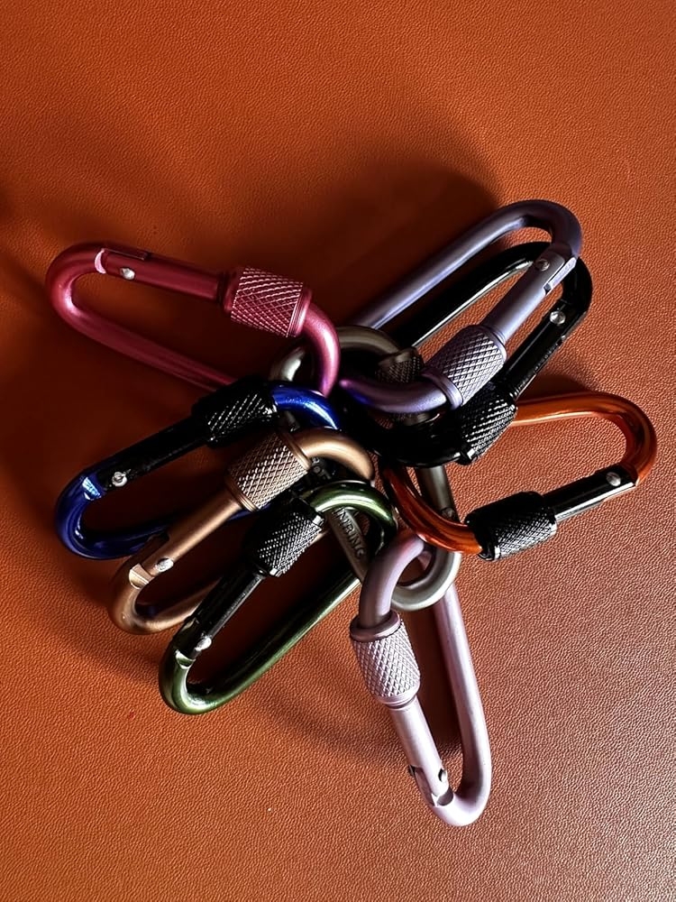 This is a big set of different coloured carabineers.They are aluminium and small. They also have a lock gate for secure hold.These are small and Aluminium. So. They won’t hold lots of weight.Thank you for reading my review. I hope you found it useful