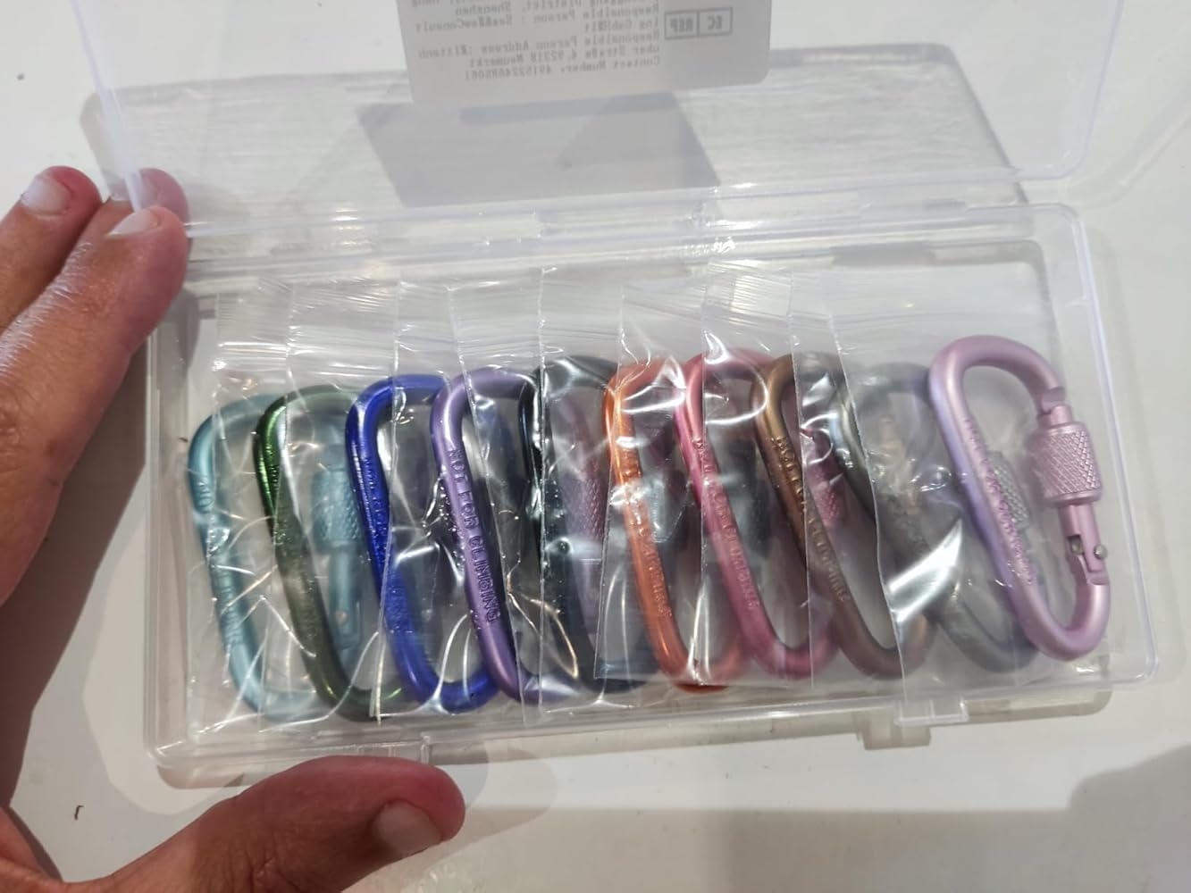 Diez piezas de aluminio de colores divertidos para combinar en cualquier situación.Los buscaba para la botella de agua, engancharla a la mochila y son perfectos para esos menesteres.Tengo que avisarte ⚠️ que aunque en la descripción dice que son de escalada al aire libre, en las piezas pone claramente que NO SON APTOS PARA ESCALADA, así que si los quieres para eso, no te van a servir.Por lo demás, vienen un una caja estupenda para tenerlos guardados de forma ordenada.¿Lo volvería a comprar?Posiblemente si.Estaremos atentos por si tenemos que actualizar la opinión 🧐 en función de la durabilidad del material.Espero que esta humilde opinión te sirva para decidir tu mejor opción de compra, esa de la que luego te alegres 😃.