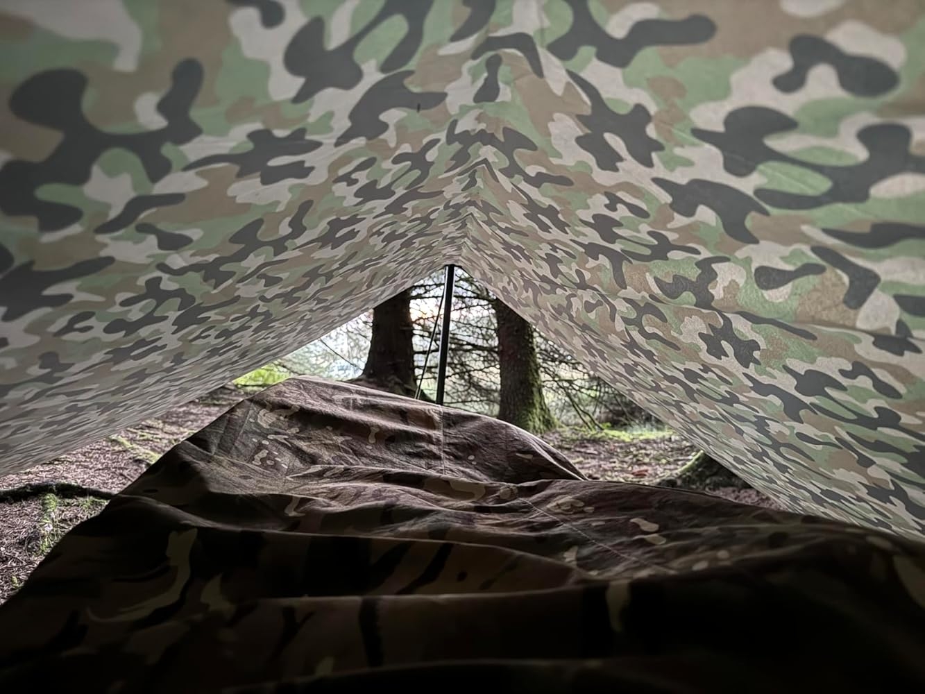 Used this for cadet camp and it’s great! 3x3m gives extra space for instructors kit and general comfort.It has a silver underside which reflects heat both keeping it cool underneath and keeping sun rays from heating it like a furnace. If you are trying to be tactical the silver is not great for that use, but I’m happy for the use I need it for.Pegs are chunky, comes with Guy lines though I have used bungees mainly instead.
